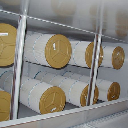 Die SEA-324 wird mit Standard-DIN Filterpatronen mit 324 mm Durchmesser und 50 mm Faltentiefe ausgerüstet. Aufgrund der relativ engen und tiefen Faltung sollte diese Anlage nur für leicht abreinigbare Stäube eingesetzt werden.