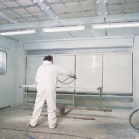 Lackierhallen vom Typ Full-Cab sind komplette Hallen mit allen lufttechnischen Einheiten wie z. B. Zuluftfiterung, Klimatisierung, Beleuchtung, Trocknung und Abluftfilterung.